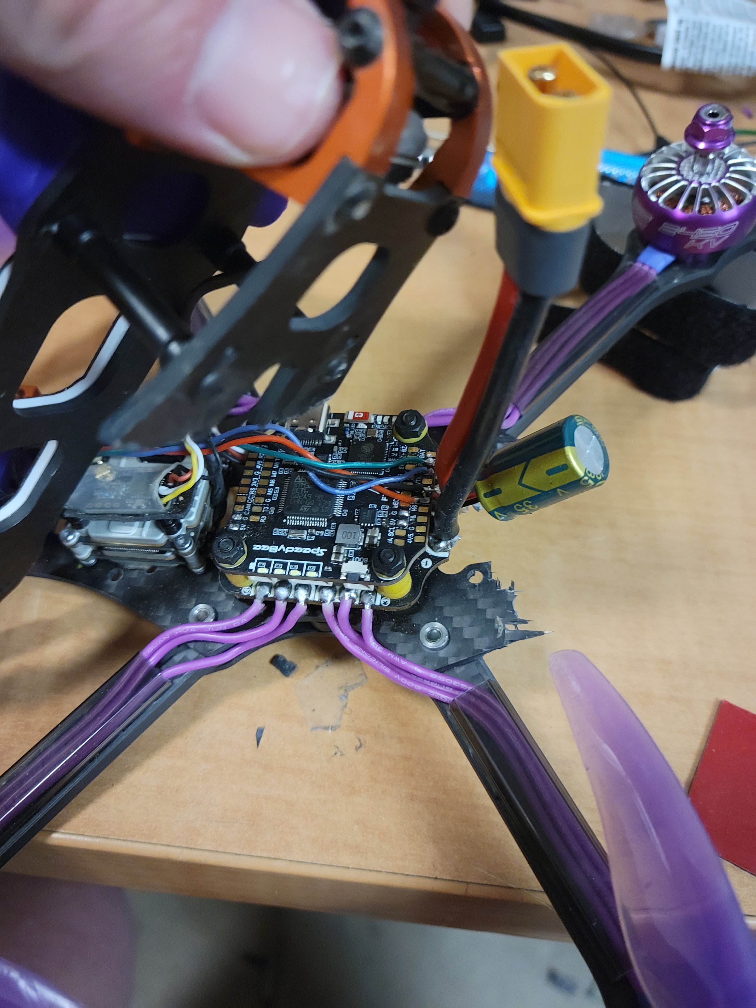 This has really been my daily driver 5 inch freestyle quad for the last year and a half or so. I have always loved the Armattan frames, very high quality and if you break them, they have a lifetime warranty. You can see where I broke the frame below and Armattan replaced it immedietly. The XING motors are generally pretty reliable and quality for the price, I run them on a few of my builds. This quad has been through a lot with only one substantial crash, but if you arent crashing your quads occasionally you arent getting any better.